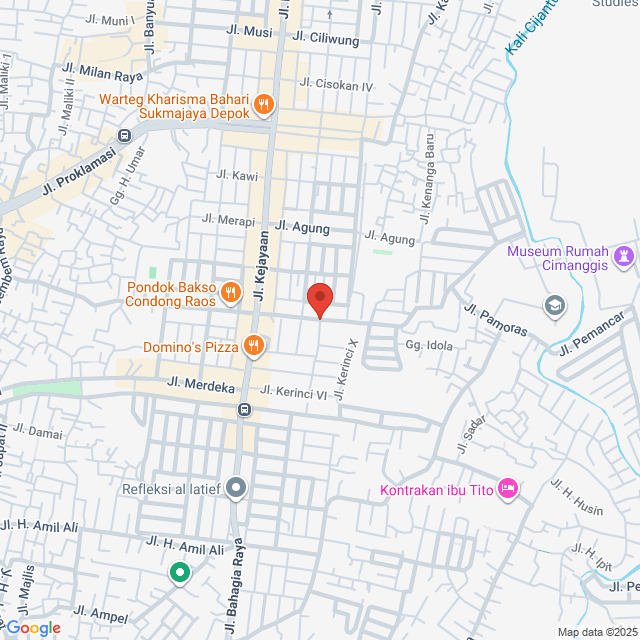 Jl. Kerinci Raya. Jl. Kerinci Raya, Abadijaya, Kec. Sukmajaya, Kota Depok, Jawa Barat 16417, Indonesia